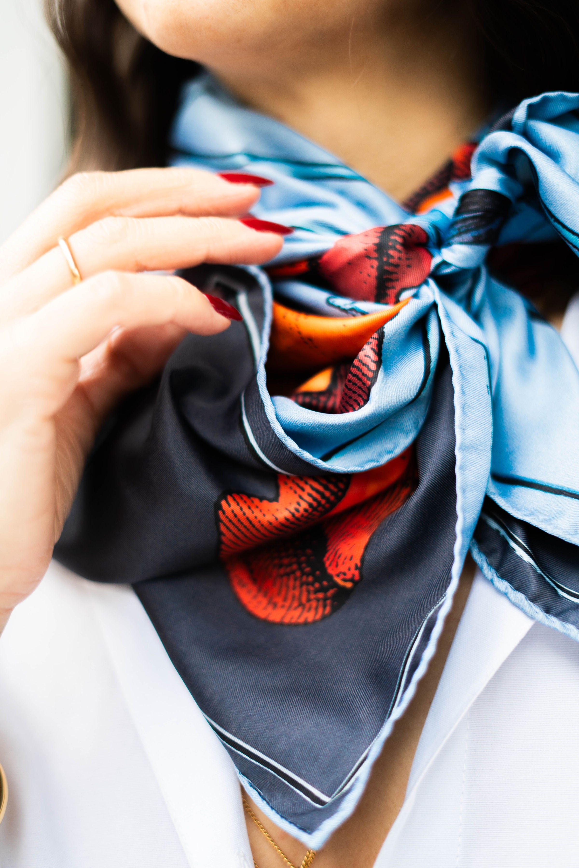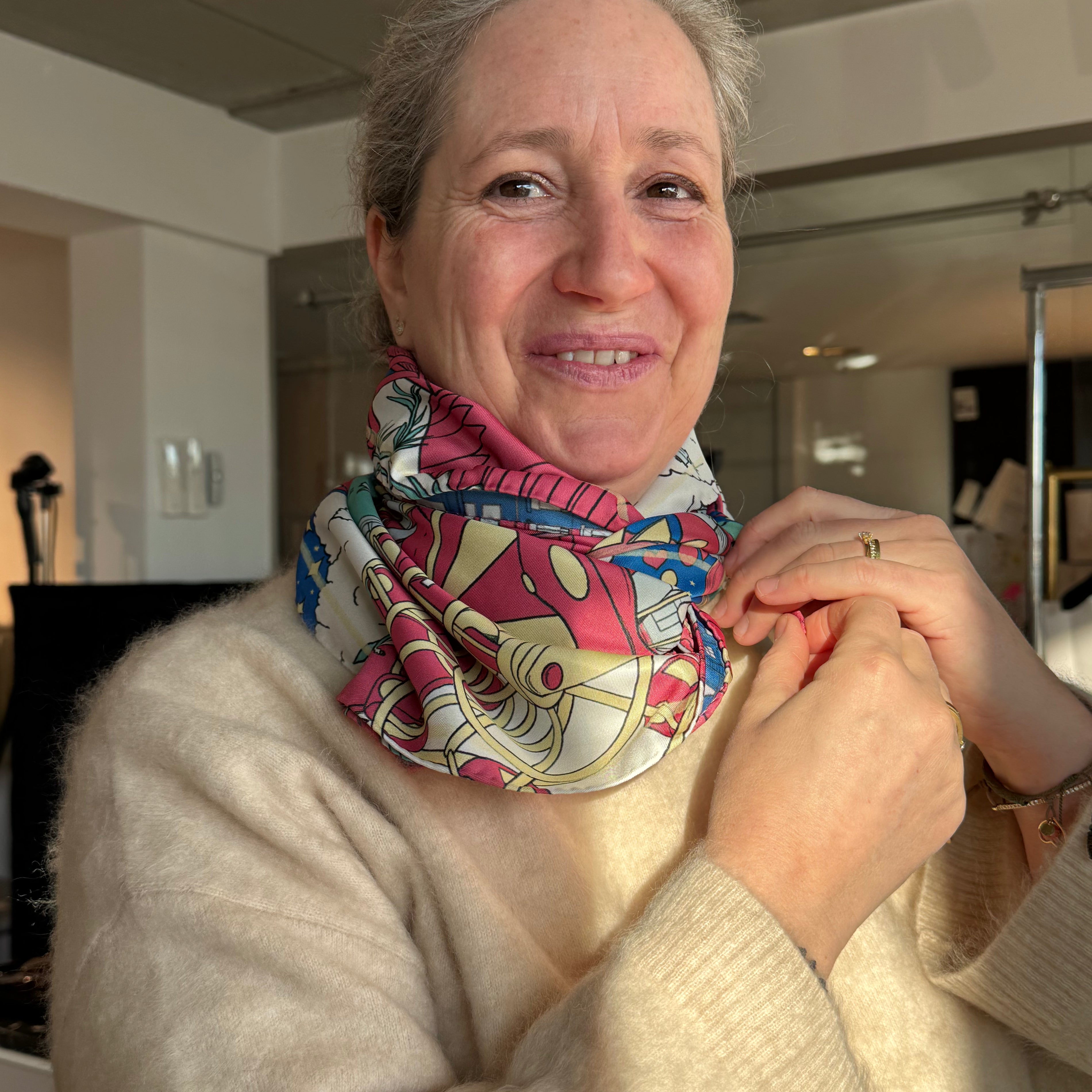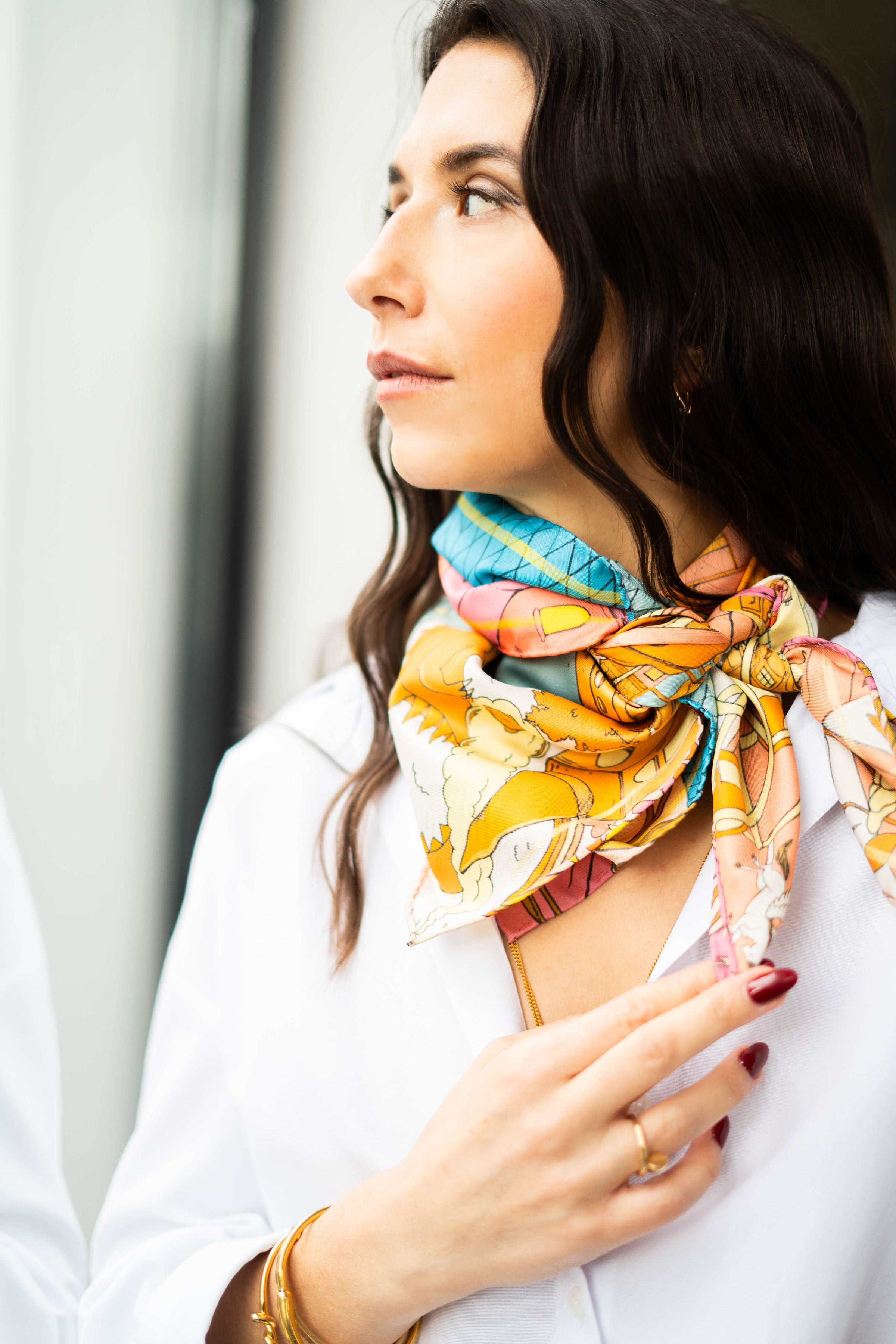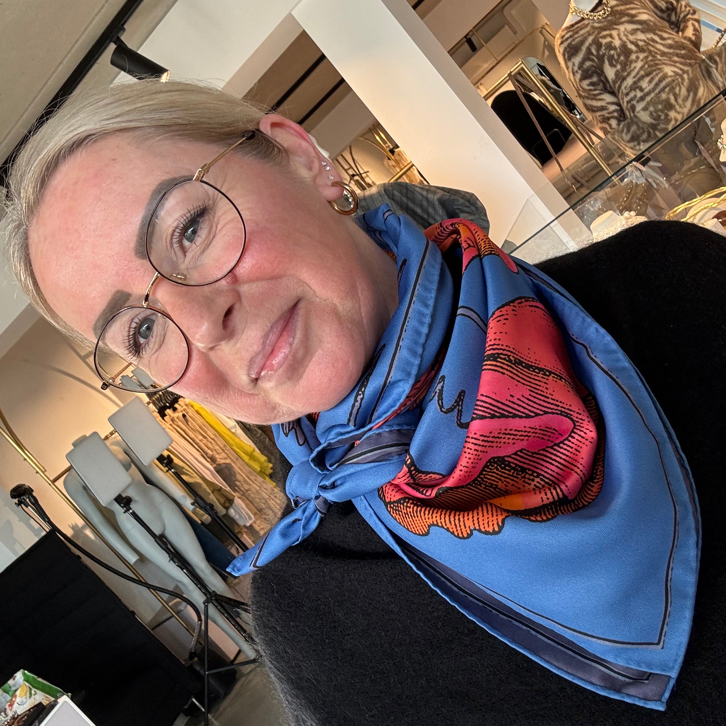 In meinem schnellen Alltag liebe ich ihre Kraft, einen Look in Sekunden zu verwandeln – mühelos, aber wirkungsvoll. Jedes unserer Tücher entsteht in Zusammenarbeit mit internationalen Designer:innen und ist wie ein kleines Kunstwerk: vielschichtig, detailreich, voller Geschichten, die man immer wieder neu entdeckt.